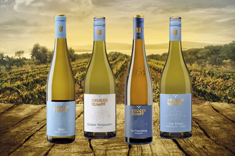 Tradition mit Passion: Das familiengeführte Weingut Kruger-Rumpf in Münster-Sarmsheim beliefert uns mit erlesenen Tropfen. „Seit 1708 widmet sich unsere Familie dem Weinbau“, erläutert Philipp Rumpf. „Unsere Leidenschaft ist es, Weine von höchster Qualität zu erzeugen und diese im Einklang mit der Natur über mehrere Generationen hinweg zu bewahren — bei sorgfältiger Handlese in den Weinbergen und mit ausreichend Ruhe und Zeit im Keller. Unsere Rebflächen befinden sich in den Spitzenlagen der Anbaugebiete Nahe und Rheinhessen, und wir setzen im Weinberg auf einen Anbau, der eine gewissenhafte Vinifizierung garantiert und unseren Weinen einen ausdrucksstarken Charakter verleiht.“ Die Weine sind von ihrem eigenen, unverwechselbaren Stil geprägt und spiegeln ihre wesentlichen Merkmale überzeugend wider: die Herkunft, den Boden, die Rebsorte und den jeweiligen Jahrgang. Familie Rumpf kann auf eine mehr als 300jährige Weinbautradition zurückblicken, die gerade erfolgreich in die nächste Generation geführt wurde. Kruger-Rumpf zählt zu den besten deutschen Weingütern und wurde bereits im Jahr 1992 in den Verband deutscher Prädikatsweingüter (VDP) aufgenommen. Auf einer Fläche von rund 30 Hektar werden ausdrucksstarke Riesling- und Burgunderweine ausgebaut, die von bis zu 80 Jahre alten Rebstöcken stammen. Das Weingut befindet sich in einem denkmalgeschützte, vollständig erhaltenen Vierseitenhof, der zwischen 1820 und 1890 entstand. Im Erdgeschoss des klassizistischen Wohnhauses führen Cornelia Rumpf und ihr Team das gutseigene Restaurant. Die verfeinerte regionale Küche der Weinstube erfreut sich einer großen Beliebtheit. Im ersten Stock des Wohnhauses befindet sich die Beletage, aufwendige Decken und Wandbemalungen, ein imposanter englischer Kronleuchter und auch die bleiverglasten Fenster erzählen vom Glanz vergangener Tage. Dieses Schmuckstück wurde Anfang der19 90er Jahren aus seinem Schneewittchen-Schlaf geholt, nachdem es über Jahrzehnte leer stand. In der oberen Etage, die ursprünglich für die Angestellten des Hauses vorgesehen war, ist mittlerweile ebenfalls ausgebaut und wird von Georg Rumpf, der für den Ausbau der Weine verantwortlich ist, bewohnt. . Im Erdgeschoss befindet sich ein für die Region typisches Kreuzgewölbe, umgangssprachlich auch Kuhkapelle genannt. Im Jahr 2009 wurde das Kreuzgewölbe aufwendig saniert, umgebaut und durch einen zeitgenössischen Anbau ergänzt. Das Kreuzgewölbe und der neu entstandene Tafelraum mit Blick in den Holzfasskeller wird heute sowohl als Gesellschaftsraum des Restaurants als auch für Veranstaltungen des Weingutes (Degustationsmenü, Jahrgangspräsentationen, Vernissagen etc.) genutzt. Philipp Rumpf: „Uns ist es wichtig, dass jedes Gebäude auf unserem Hof seine Geschichte erzählt, allerdings im jeweiligen Gewand der Zeit.“